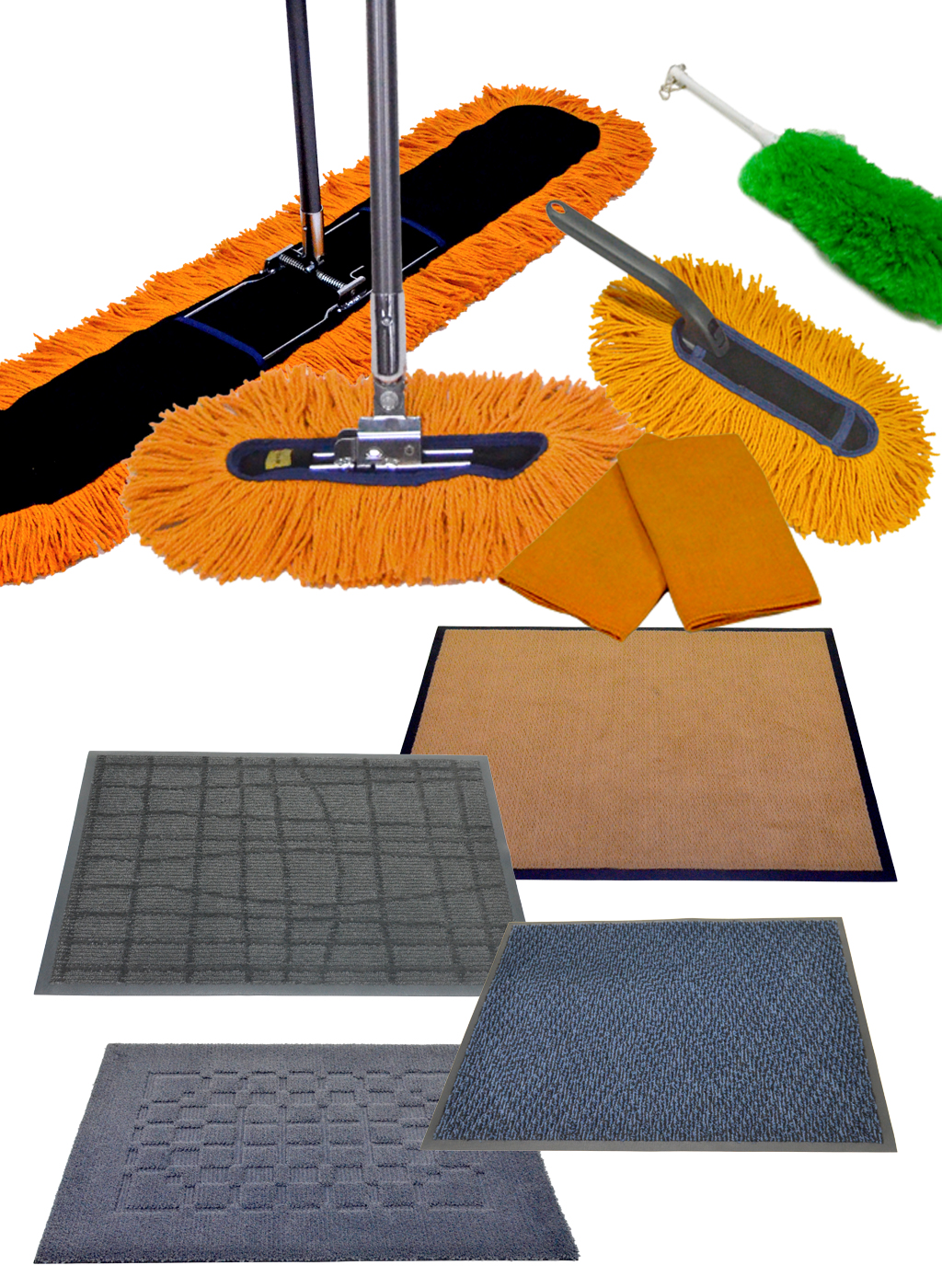 業務用から家庭用まで、モップやマットをはじめとする清掃用具のレンタル・販売を通じて、汚れの侵入を防ぎ、日常の清掃を効率化します。